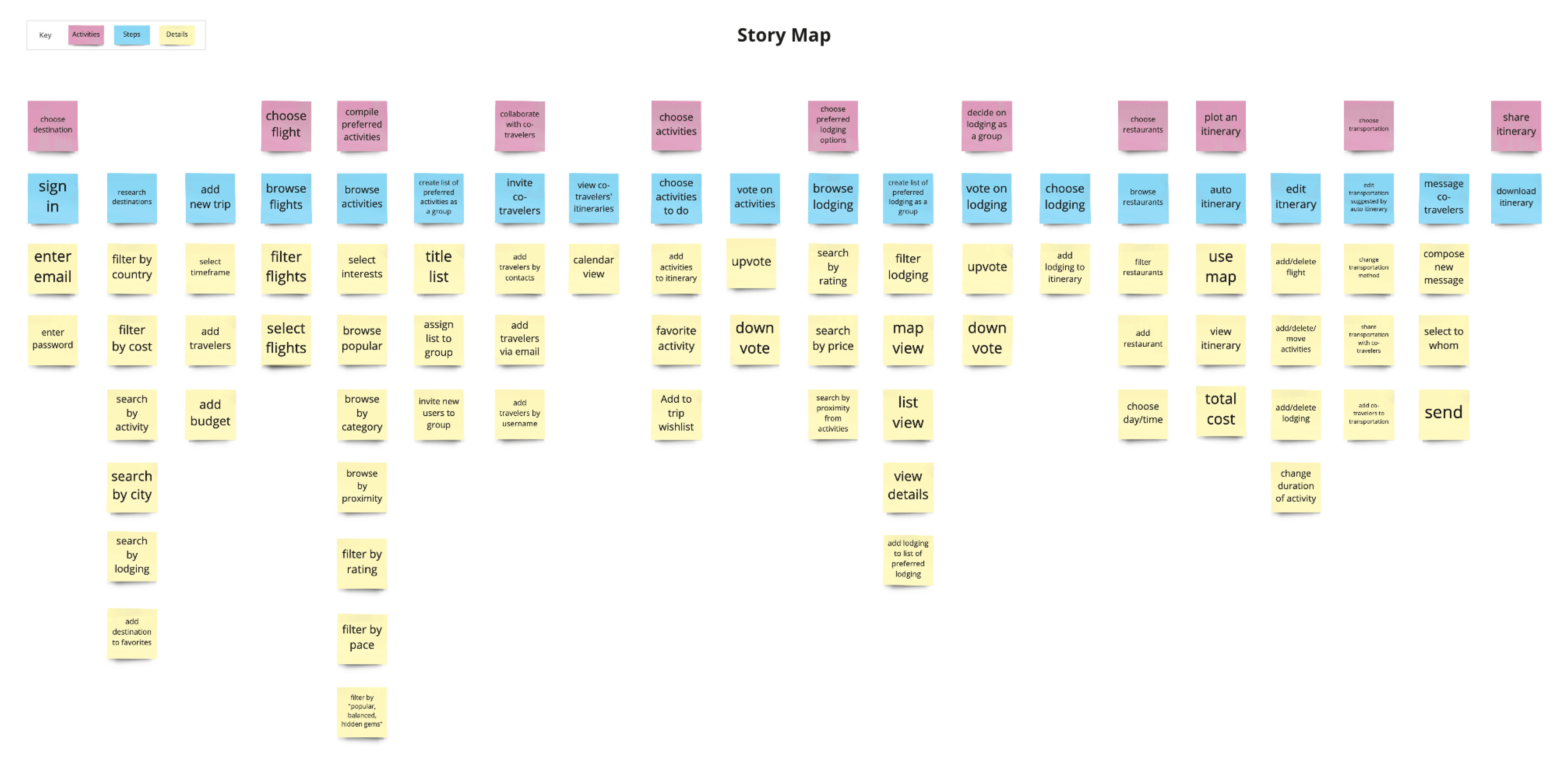 Because the project was scoped as an MVP, we had to stay focused on the highest-value planning and collaboration features first. That meant leaving broader travel features like flights, expanded messaging, checklists, and more advanced browsing for future iterations. The limited timeline also meant we had to be selective about which flows to prototype in depth and test most thoroughly