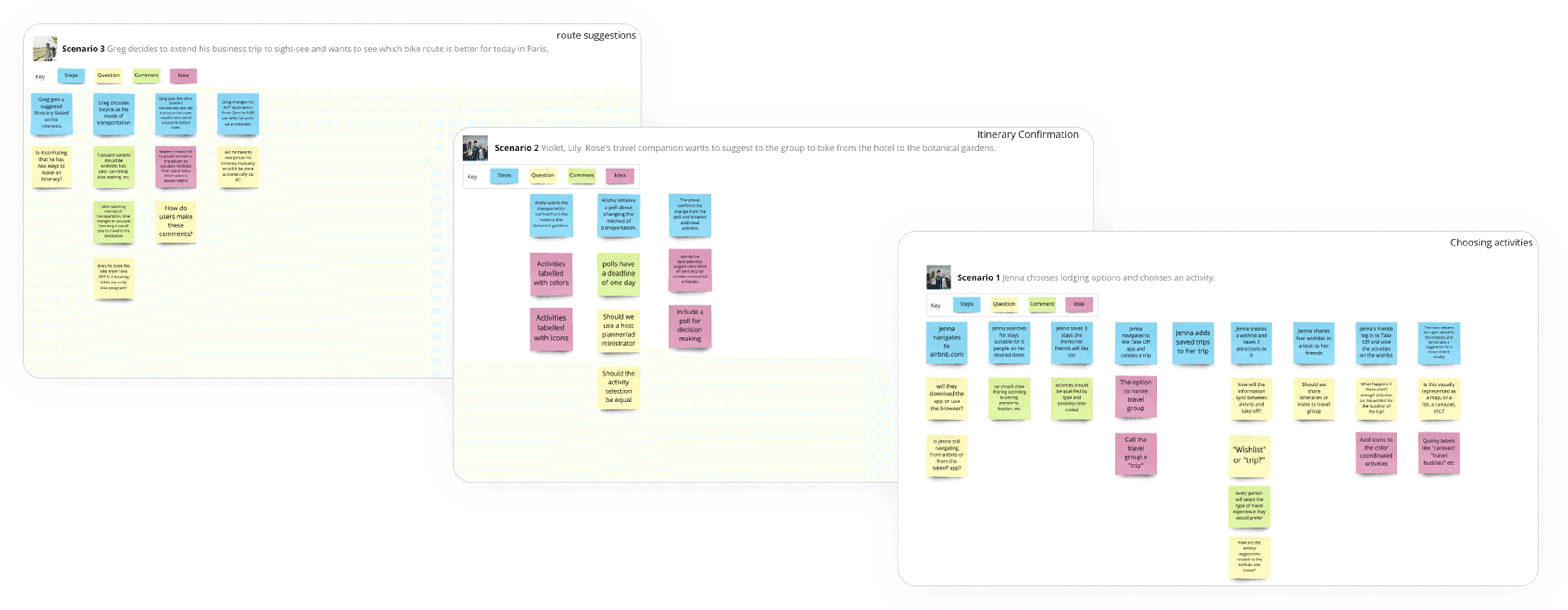That gave the concept a strong direction: build around the real planning process, not just around travel browsing. We used scenario mapping, story mapping, and design mapping to define the most valuable features and the clearest MVP.